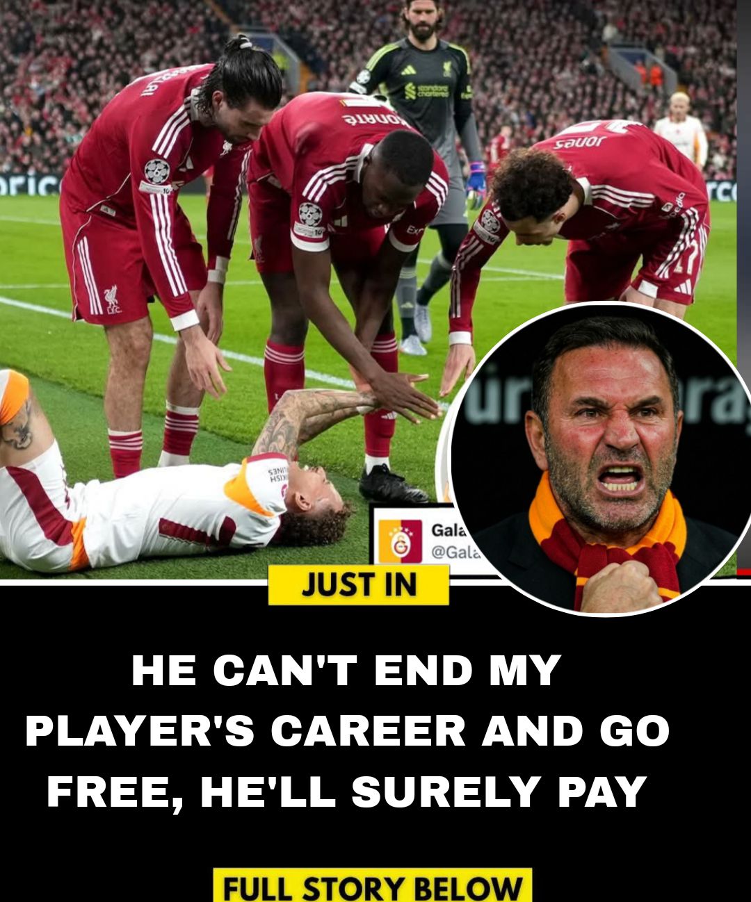 Galatasaray have issued an official update following a worrying injury suffered by during their Champions League clash with Liverpool at Anfield.